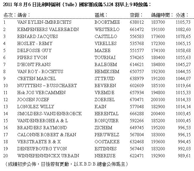 59·³ªº¤×ùØ´µ©M53·³ªº¹pª÷¯Ç¼w¬O¦h¦~¦n¤Í¡A±q1992¦~¶}©l¥LÌ«K·fÀɰÑÁÉ¡C¥Ñ©ó¹pª÷¯Ç¼wÄÑ¥]©±ªº¥Í·N«D±`Ác¦£¡A¤u§@®É¶¡¤S¤£½T©w¡A©Ò¥HÅý¥L¨C¤ÑºÞ²zÂF¤l¤£¤Ó²{¹ê¡C¦Ó¦b¤×ùØ´µªºÀ°§U¤U¡A³oÓ°ÝÃD±o¨ìÁA¸Ñ¨M¡A¥L̪º¤ñÁɦ¨ÁZ«D±`éw¡A¦b¬ÙÁÉ©M¬Ù»ÚÁɤW³£¦³¤£¿ùªºµo´§¡A³o¦¸¤SÀò±o¥þ°ê«ax§óµ¹¥L̰í«ù¦Û¤vªº¹D¸ô¼W²K¤F«H¤ß¡A¦]¬°2011¦~¥ḺN¥Dnªºª`·N¤O¶°¤¤¨ì¤F2·³ÂF¨Ó°Ñ¥[ªø¶ZÂ÷°ê®aÁÉ¡C¾¨ºÞ³oÓ¶g¥½¶}©l®É¤Ñ®ð«D±`´c¦H¡A¦ý¬O¦n¦b°Ñ¥[¦w¦Nºûº¸©M¥¬¬¥¥ËÁɪºÂF¤lÂk±_«D±`¶¶§Q¡CµM¦Ó¥L̪º@¤ß¦b³Ì«á±o¨ì¤F¦^³ø¡A¤@¤Ñªºµ¥«Ý³Ì«á²×©óÅw³ß¦¬³õ¡A¤@¦Ð¿ï¤âÂF¦b18ÂI37¤À¸¶V638.02km¤§«á±q¹Ï§QÂk¨Ó¡A¥L´N¹³¤l¼u¯ë¸¨¨ìÂFªÙªº¤J¤f³B¡C«á¨Ó³o¦ÐÂF¤l¦¨¬°¥þ°ê¦¨ÂF²Õ«ax¡A¤À³t¬°1105.73¦Ì/¤À¡C±q»ó¤l¤W¥i¥H¬Ý¨ì¥L¦bÂk±_³~¤¤¹J¨ì¤F°}«BªºÅ§À»¡C¦ý¬O³o¨Ã¨S¦³¼vÅT¥L̪º¿³P¡A¦]¬°¥þ°ê«ax¥i¤£¬O§A¦b¨C¶g³£¯à°÷Àò±oªº¡C³´µ¯Sº¸¬¥¡]Westerlo¡^ªº§¢¥»¥§º¸¡]V.&D.Kempeneers¡^¥H1082¦Ì/¤Àªº³t«×Àò±o¨Èx¡A¥d´µ´À¬ù¡]Castillo¡^ªº¶®§J°Ç¯Çº¸¡]Jacques Renard¡^¥H1078¦Ì/¤Àªº¦¨ÁZÀò±o©ux¡AÄÑ¥]®v¹pª÷¯Ç¼wÀ³¸Ó¯N¤W¤@®y¬ü¨ýªºS·RÛ³J¿|¨Ó©Û«Ý¥Lªº¦n¤Í©M»®Û¯S¡]Herent¡^Ѽֳ¡ªºÂF¤ÍÌ¡C