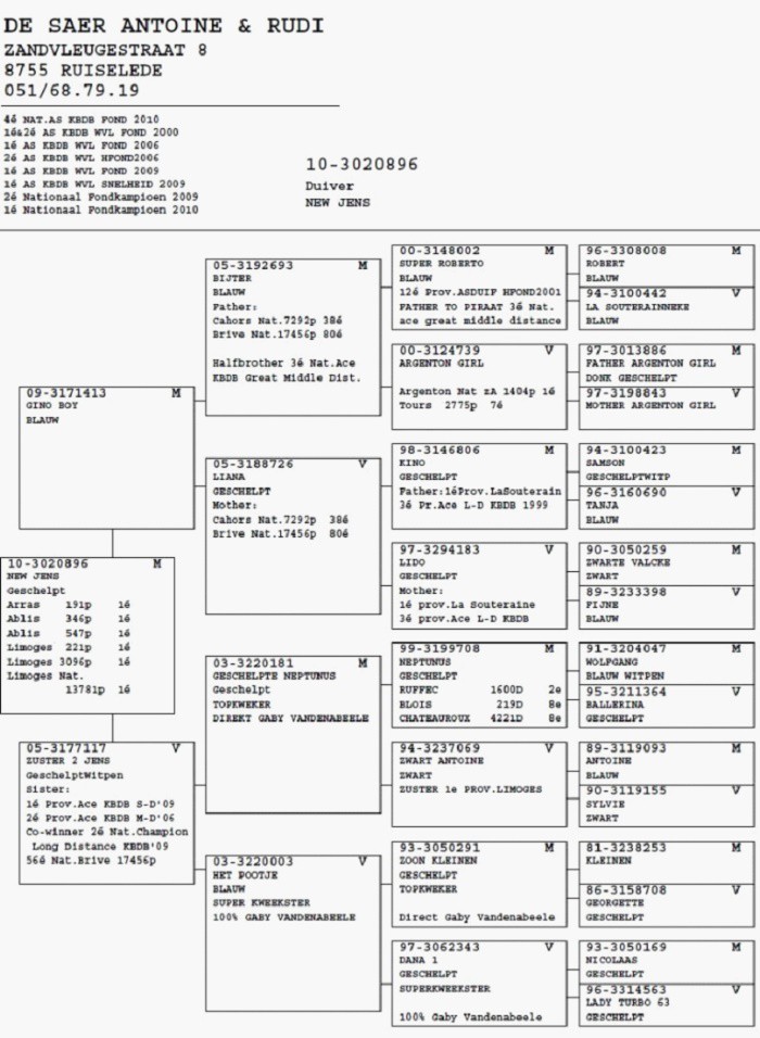 2010年比利時KBDB全國最佳長距離鴿舍冠軍功臣之一。