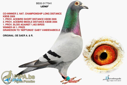 1、"傑斯"(Jens) B05-3177041,獲得2009全省速度鴿王冠軍+2006年全省中距離鴿王亞軍。