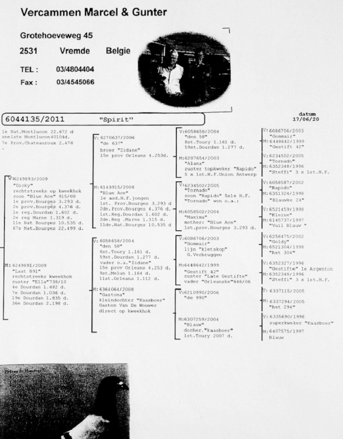 •外祖父:B99-6354338“小灰雄”.灰,榮獲:波治全省3.207羽冠軍、全國21.593羽10位、拉索特年全省2.163羽17位。