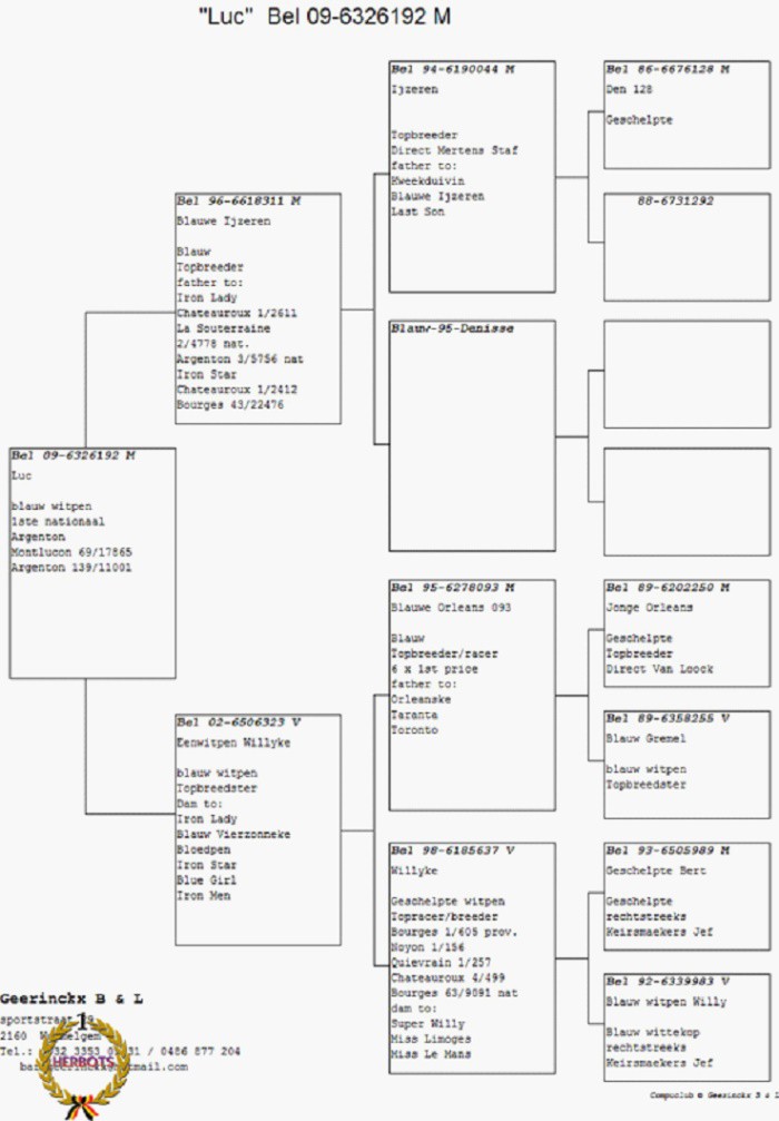獲得亞精頓成鴿組12.447羽全國冠軍B09-6326192灰公 血統書