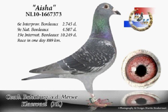 波爾多國家賽4,507羽9位、國際賽10,249羽19位:愛莎(Aisha,NL10-1667373)班母