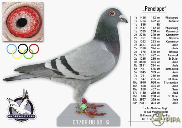 01769-08-56 潘妮洛普(Penelope),奧林匹克代表鴿" D類"季軍(德拉帕父子)