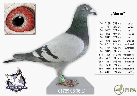 德拉帕知道PIPA享有極高的聲譽,所以他很高興能夠有機會為2011年四月份的拍賣會提供20羽精品德國鴿。安德列告訴我他不會拿出任何沒有達到標準的鴿子。他感到不好的鴿子,別人也不會感覺很好。安德列已經幫助很多鴿友成為冠軍賽手!他的鴿子在很多鴿友那裡都有上佳的發揮。這種趨勢應該在未來繼續!安德列斯不僅滿足於自己取得優秀的成績,他也經常會很欣慰於能夠幫助別人在賽鴿運動中取勝。