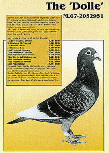“多利”、“蘭吉”、“波特”和“歐德五十四”,這四隻鴿子在七○年代創下了不少的佳績,曾使得當時荷蘭、比利時、德國的一些長距離賽鴿好手,大感困惑:為何這些神奇深暗鴿眼的鴿子,有如此不可思議的成績。不久,范吉爾就被來各方要求他出售鴿子的聲浪給淹沒了。然而,他還是拒絕了大部分人的要求,因為這些鴿子曾帶給他名利與無可言喻的樂趣,他不願看著它們離開自己的巢,後來大多數的鴿子都在自己出生的地方死亡了。“蘭吉”死於1979年,“多利”死於1985年,當時它十八歲。在1983年時,“多利”仍是一個多產的強壯老公鴿,但是後來它卻衰老而死在自己孵育的幼鴿巢中。