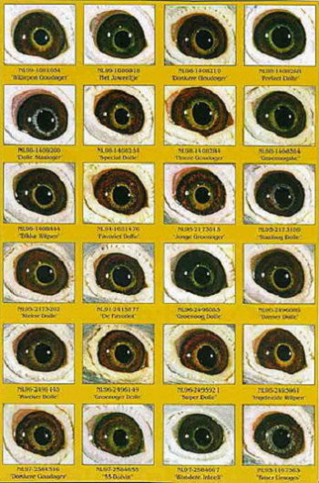世界各國許多的賽鴿人士,都對這些有著漂亮眼睛的鴿子深具好感與信心,而范吉爾總是把:棕色眼鴿(古銅目)、深紅色(暗西仔目)、青綠眼的鴿子,視為他最好與最成功的鴿子,並且盡一切能力飼養它們。“多利”就擁有一對漂亮的深棕紅眼睛,是我見過最美的一羽世界級銘鴿。“多利二世”,它的遺傳是 多利號 最好的一羽直子,並且同樣擁有這種顏色的眼睛,如果不看腳環簡直就是一個模子生產出來的東西,連照片都無法判別。而“多利”的母親眼睛是暗深紅色的。