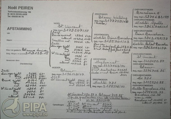 父鴿:B10-3172507灰公,入賞2013年比利時聖維仙St Vincent全國3.786羽亞軍,國際10.944羽9 位。