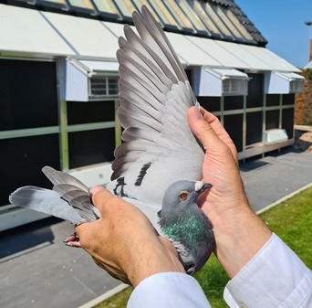 這羽漂亮的神奇鴿,在一歲鴿的時候,並沒有取得過令人驚歎的成績,但是在最後一場長距離賽上,他獲得了NPO/NU查特頓超15,000羽冠軍。今年,他已經獲得了NPO威爾森6位,NPOP威爾森20位。現在,他又獲得了查特路全國5位。這些成績,已經可以讓他躋身2021年WHZB-TBOTB全國長距離鴿王8位。他的父親出自銘鴿“哈利”X“艾絲米”(Esmee),是楊.胡曼斯與艾辛加合作育種的結晶。母親這邊,則出自“阿莉西婭”(Alexia)X伯特.凡登伯格(Bert Vandenberghe)的“葛蘿莉婭鬥士”(Fighter Gloria)。