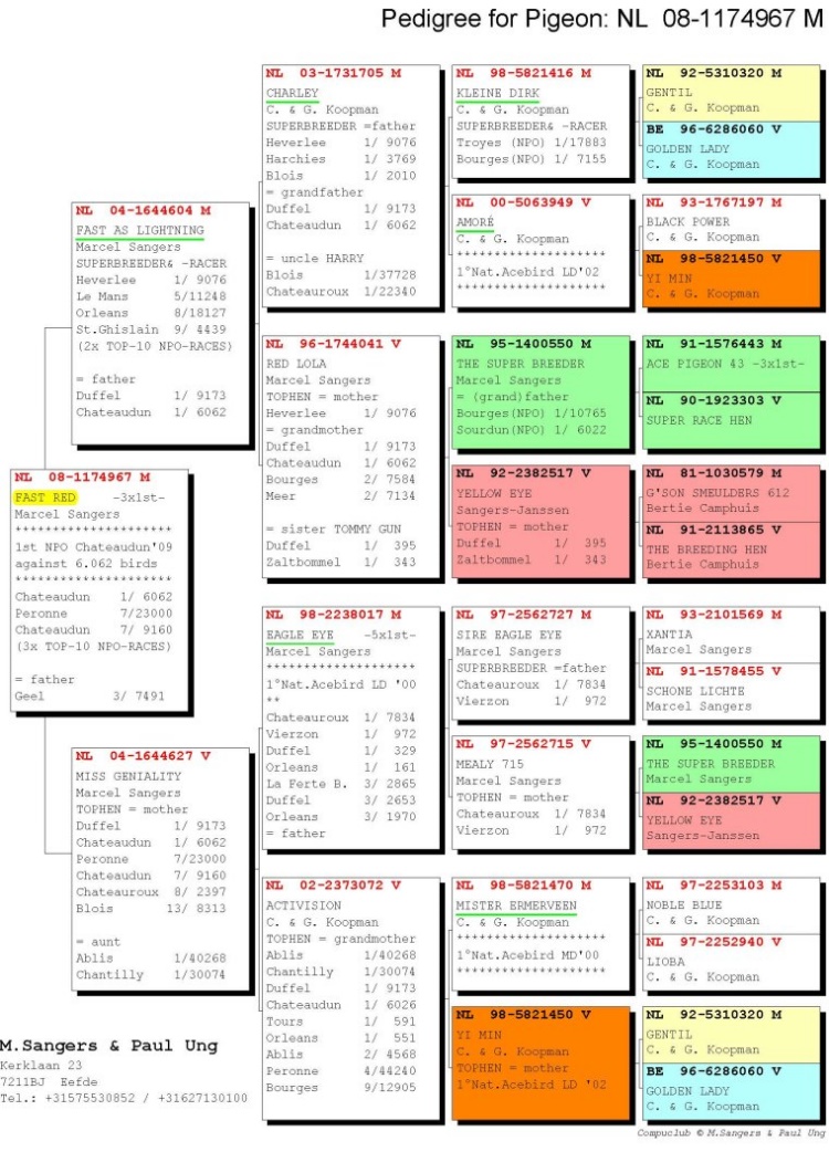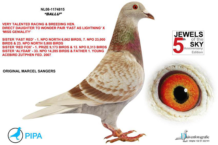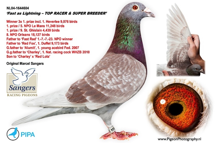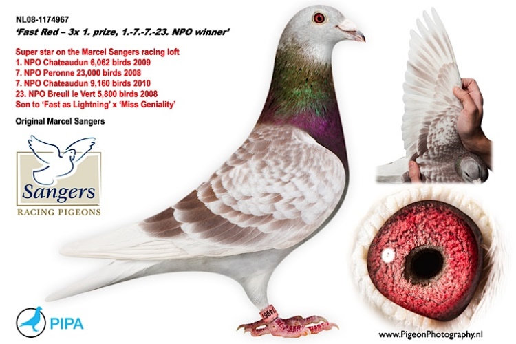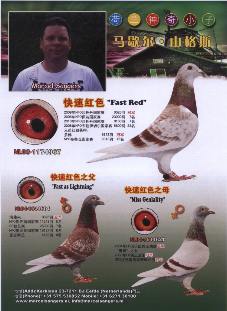 2 - 閃電紅(Fast Red):*NPO貝羅尼23000羽7位*NPO(Noord Breuil le Vert )全國5800羽23位*查特頓572公里全國6.062羽冠軍