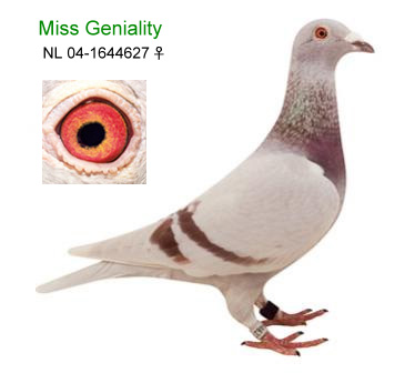 親善小姐(Miss Geniality) 2004年聯合會長距離幼鴿鴿王冠軍、貝羅尼5021羽5位 翔特利2510羽22位、豪登1902羽31位、博斯托2903羽34位。