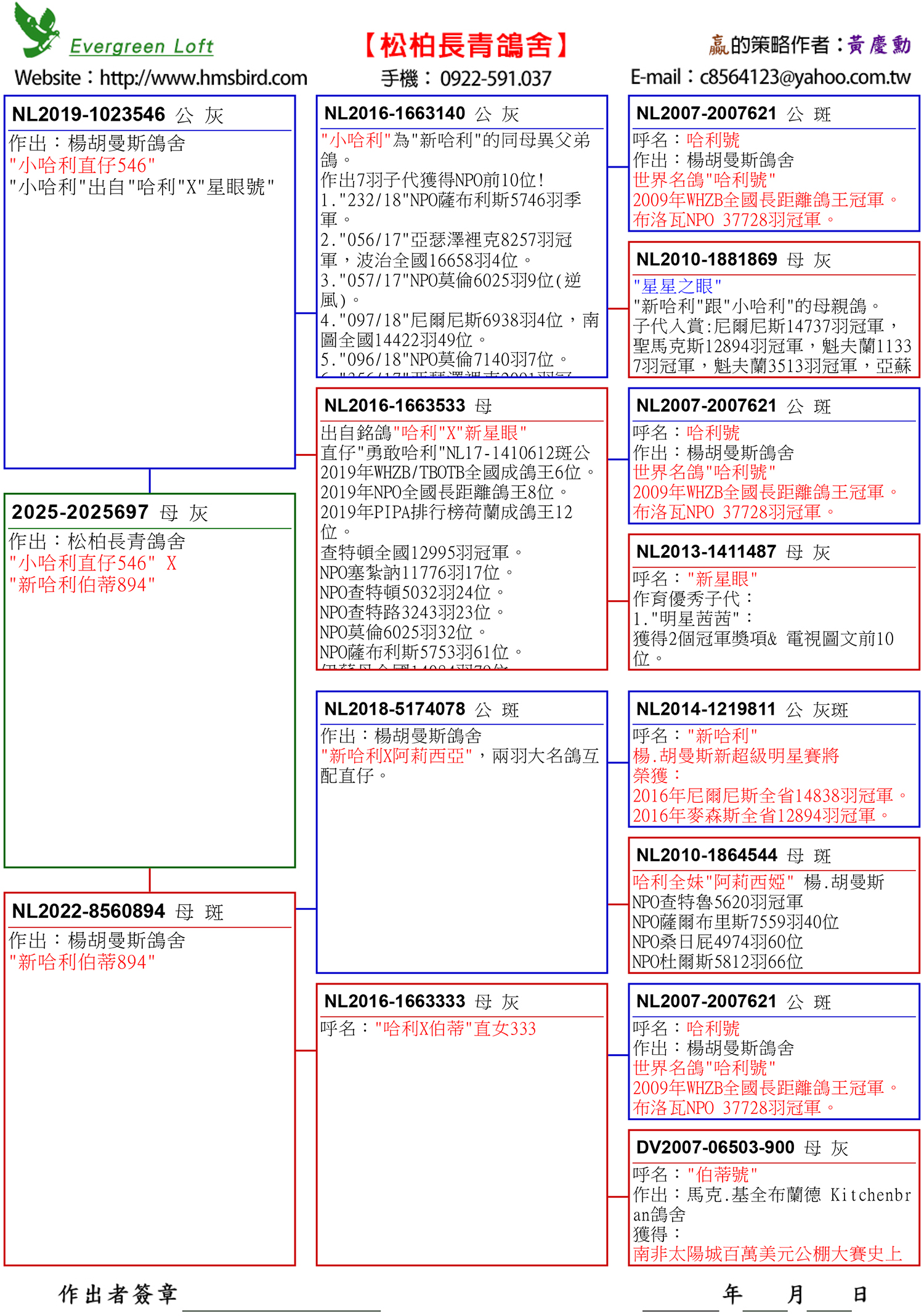 父鴿:NL19-1023546灰公,”小哈利 NL16-1663140灰公”直子,哈利