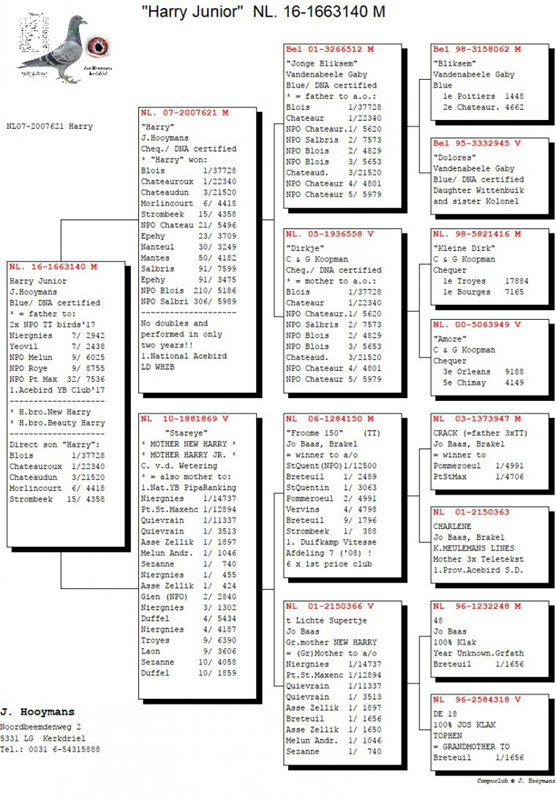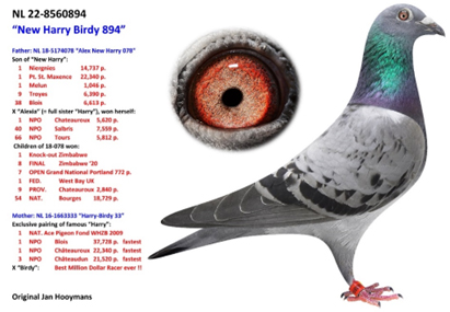 父親“小哈利”是頂級種鴿,出自傳奇銘鴿“哈利”