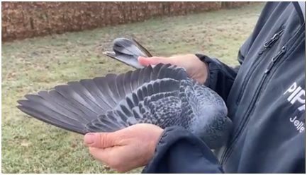 | NL21-1345427斑.公,”希爾克直子X直女=近親作出427”,荷蘭強豪耶勒.耶勒瑪鴿系,中型、西眼、骨架硬、翅羽排列完美,總評分98分。