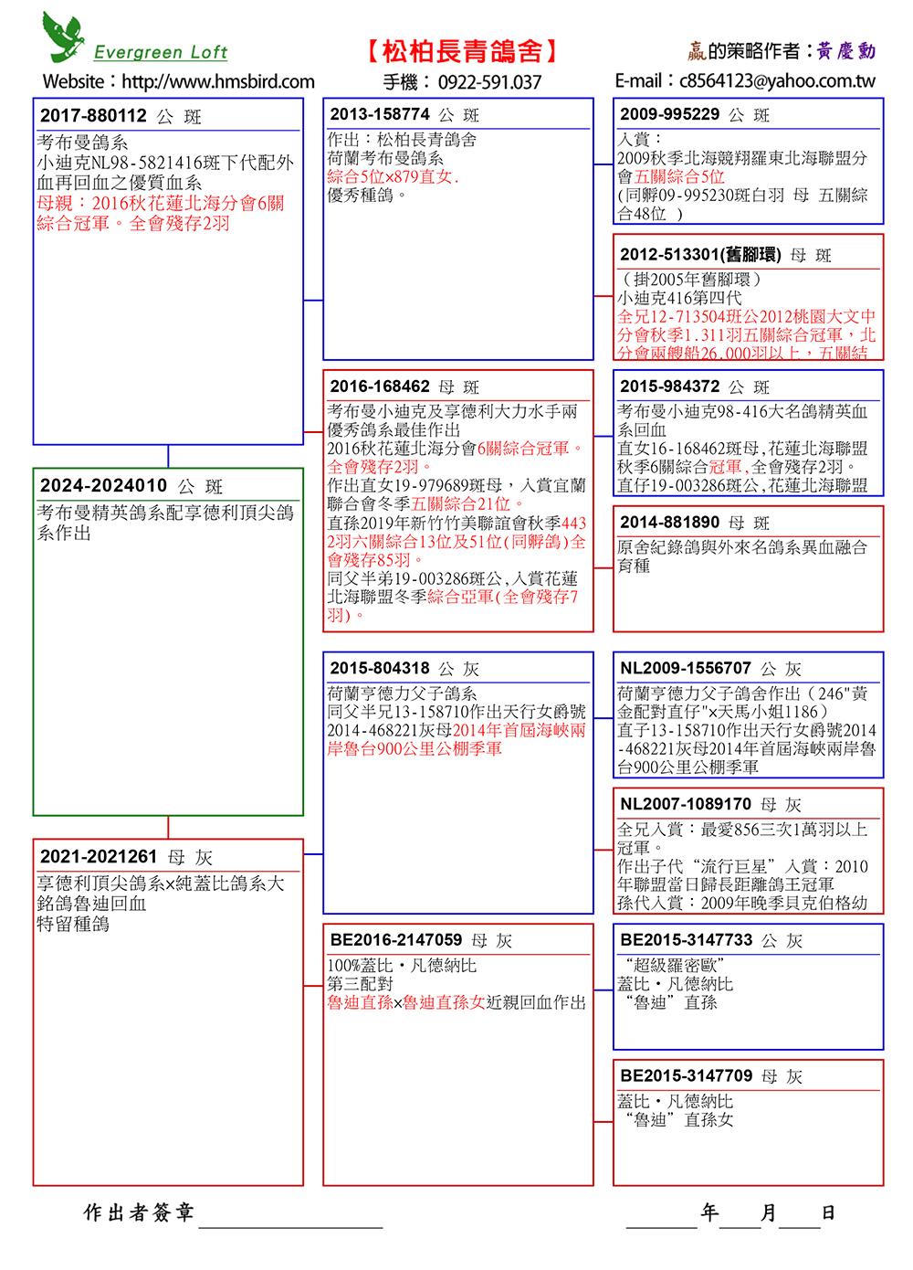 1、24-2024010斑.公特留種鴿,掛私環。 父鴿:17-880112斑公,(2016秋花蓮北海分會6關綜合冠軍,全會殘存2羽)直子。 母鴿:21-2021261灰母,享德利頂尖鴿系×蓋比鴿系大銘鴿魯迪回血,下代好用。