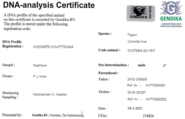 “伯蒂近親317” DV07364-20-1317 灰公 D.N.A.檢驗證明書