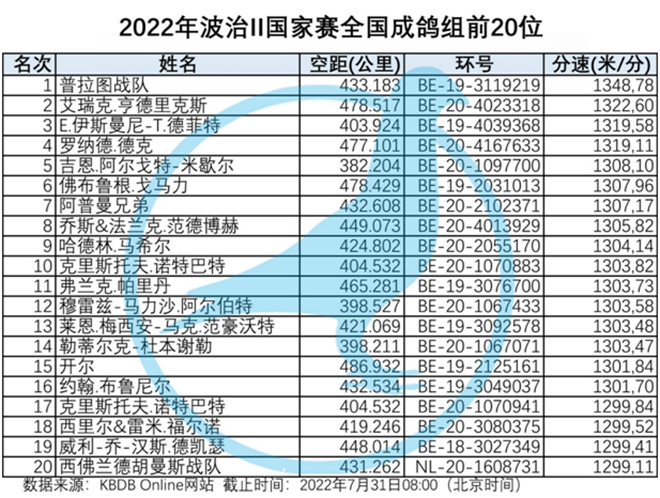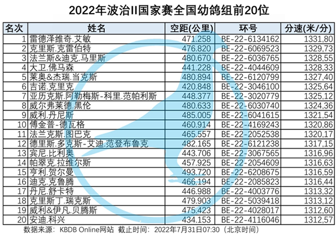 2022年比利時波治II全國賽,總參賽羽數為41.804羽冠軍血統書。