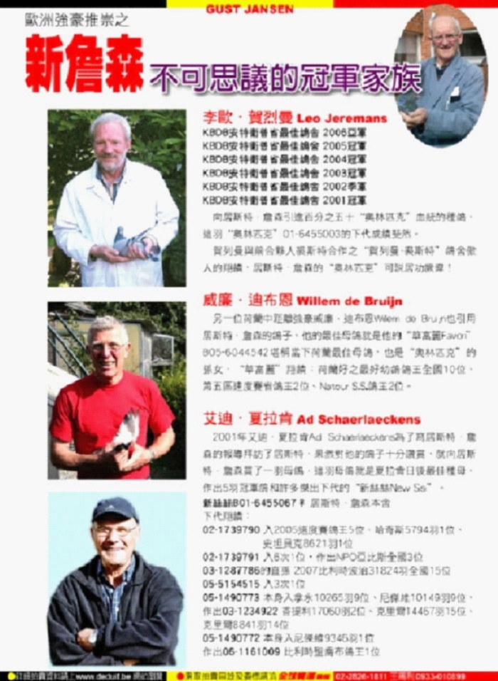 註明:賀列曼.裘斯特鴿系中擁有比利時中距離強豪范迪克家族“所向無敵”的全弟鴿雙公B96-6452295灰公+B96-6452296灰公,在整個家族血系中扮演舉足輕重的地位。
