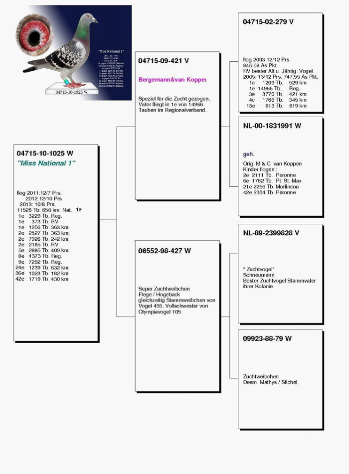 這羽” “德國國家一號小姐”DV04715-10-1025班母是國外好友特別推薦,從照片上看確實是一羽非常不錯的記錄鴿,體型中略小型,是國內海翔鴿友最喜歡那一型,至於是否能如願以償順利發揮,那就看日後作出選手鴿的表現了。