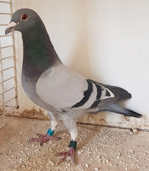 母鴿:NL06-1945520斑白羽「年輕白腹號」重要種公的直女。