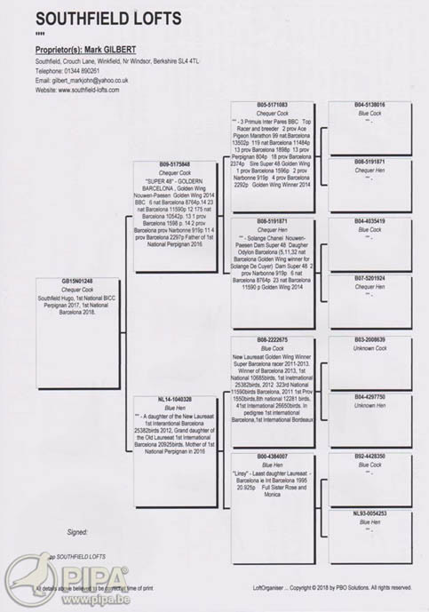 獲得2016年波品納荷蘭全國4.029羽(一歲鴿)季軍,國際賽12.689羽5位,今(2018)年再度獲得荷蘭波城全國3.530羽39位。