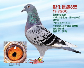 六、2019年彰化信鴿協會冬季賽(全會殘存20羽),綜合19位19-239865斑母。