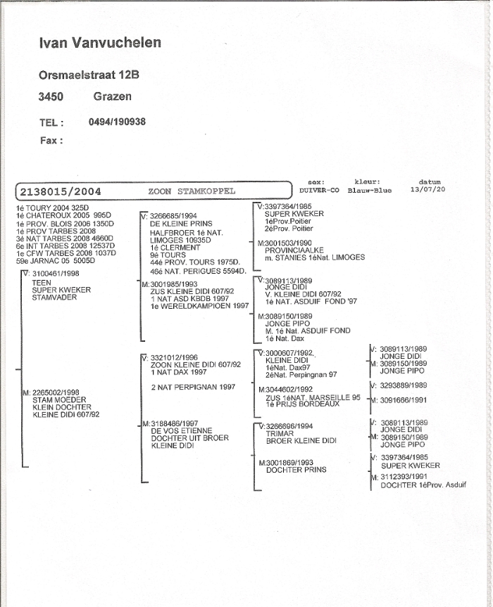 2 grandchildren from 2138015-04 won last week 1st + 2 nd club on Jarnac race 750 km with very hot weather !!!