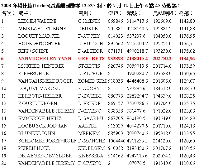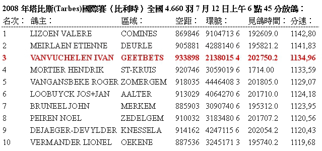 2010年比利時利蒙治(Limoges)一歲鴿國家賽報導: