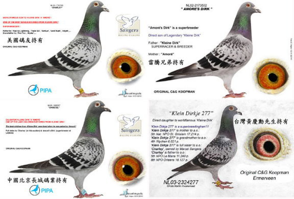 考布曼世界知名銘鴿小迪克NL98-5821416(Kleine Dirk)全妹伊美NL98-5821450(Yu-Min)直女。