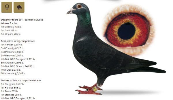 ●母鴿NL06-1073327 "切爾",超級賽將&種母,出自"米蘭達",本身榮獲: