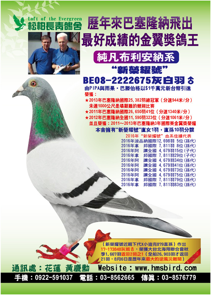 鴿舍連絡人:黃慶勳 電話:0922-591.037 03-8562.665