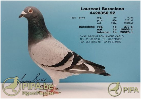 1995年巴塞隆納國際賽20.925羽總冠軍鴿