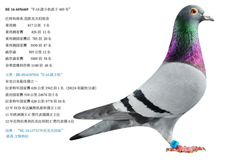“F16直仔469” B16-6056469 灰公 中文翻譯血統書