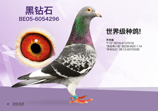 父鴿:B05-6054296(Zwarten Diamant)黑鑽石-吉林克斯(Geerinckx L B J)鴿舍桑傑士鴿系作出。