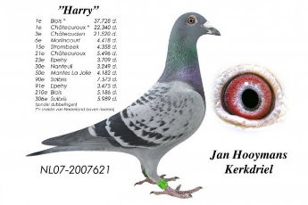 這意味著楊.胡曼斯鴿系在這兩羽獲獎鴿的血統中占到了75%的哈利家族血源。