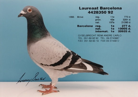 1995年巴塞隆納國際賽20.925羽總冠軍鴿