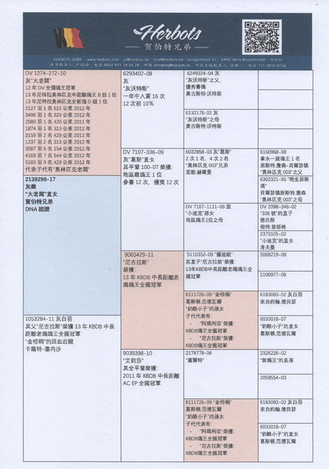 外祖父鴿:”尼古拉斯” B11-9065429灰公 中文翻譯血統書
