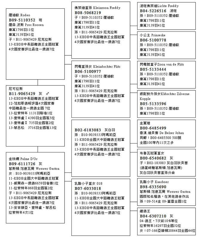 “金棕櫚”B09-6111726灰母,超級種鴿,作出”尼古拉斯”及”阿瑪力亞”等兩羽全國鴿王冠軍鴿。