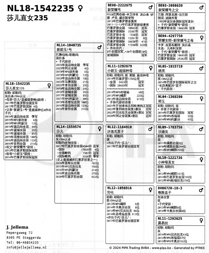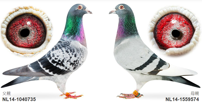 ●母鴿:NL14-1559574“莎兒”,出自“沃德克直子”x頂尖雌“勞倫”,本身榮獲: