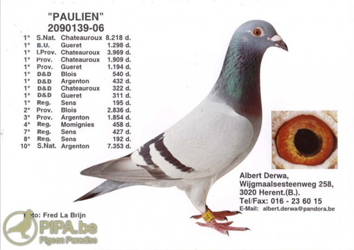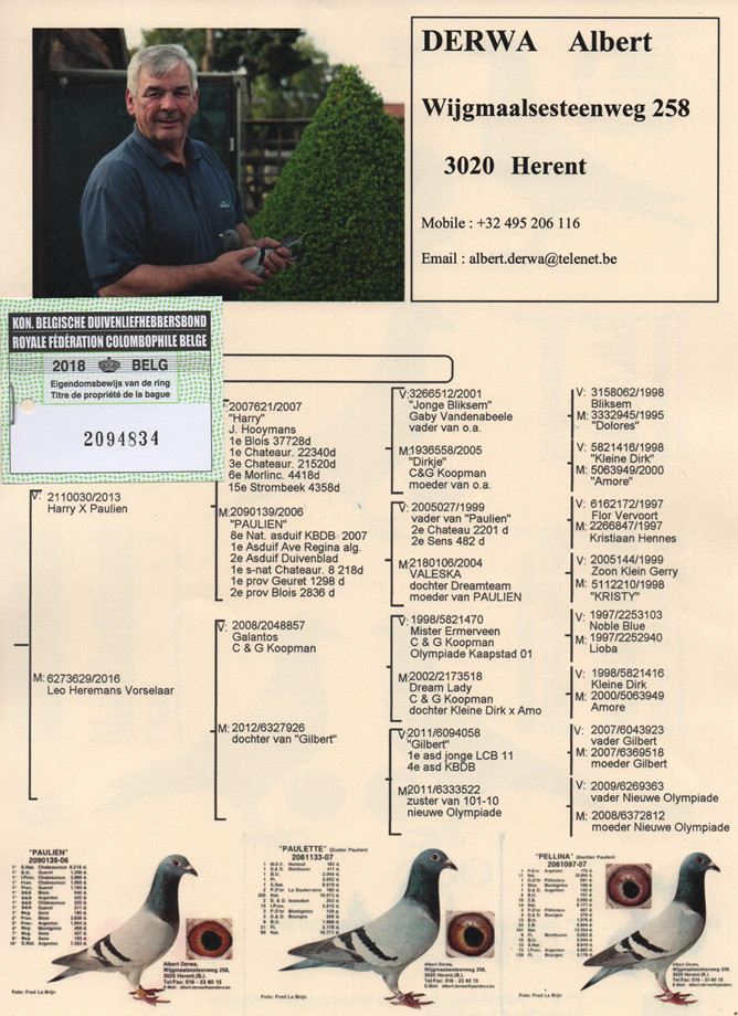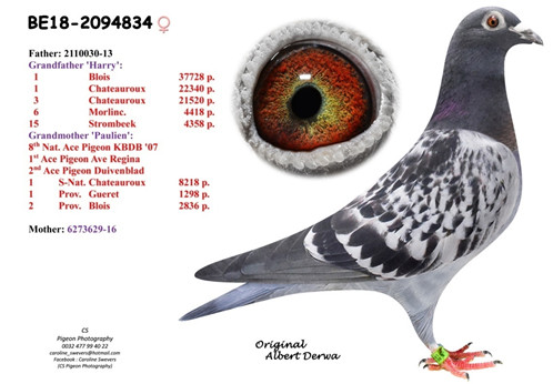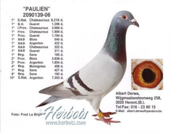 9.“保羅先生”在卓越育種中心作出子孫代獲得:12個冠軍獎項&全國中距離鴿王冠軍(“法國女王”)。