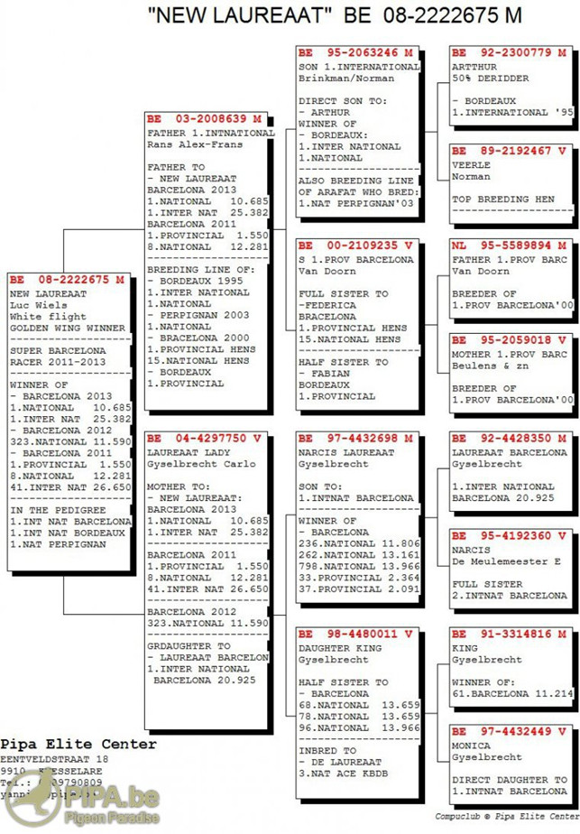 -“巴賽隆納榮耀號”的後代主宰著整個國際鴿壇,代表子代榮獲: