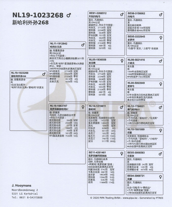 “新哈利直孫268” NL19-1023268灰公 血統書