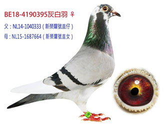 ●母鴿:BE18-4190395灰白羽.母 “阿莉亞號” (新榮耀號雙頭近親作出直孫)