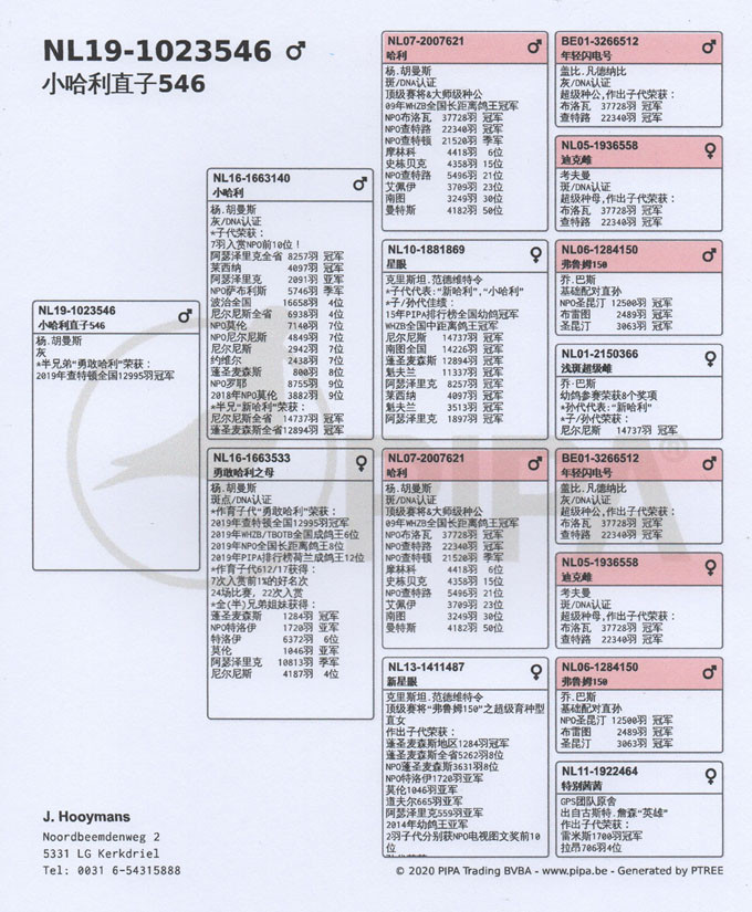 2019年PIPA排行榜荷蘭成鴿王12位。