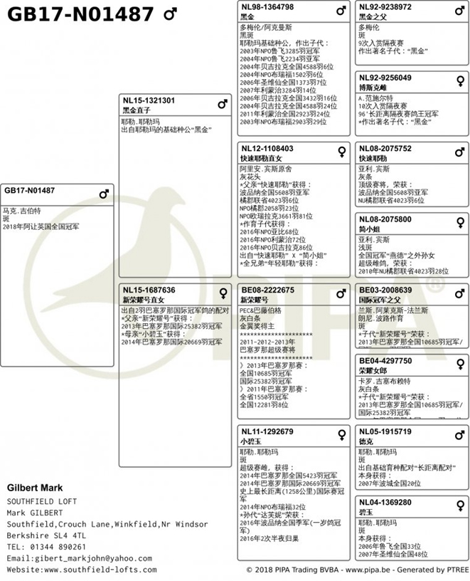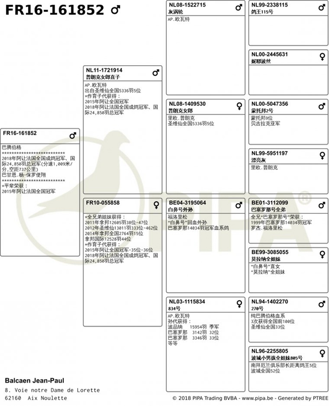 阿讓國際賽荷蘭全國10.530羽總冠軍鴿NL17-1262008班母 中文翻譯血統書