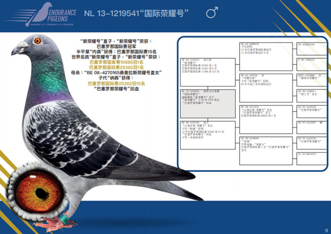 父鴿:NL13-1219541斑公”國際榮耀號”,(“新榮耀號” X “榮耀桑普拉斯號”)直仔。