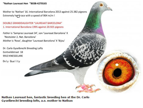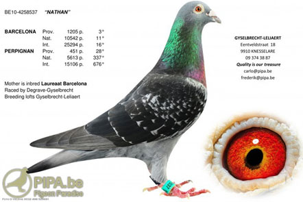 作出直仔:”Nathan納森號” BE10-4258537班公,獲得2013年巴賽隆納國際賽25.382羽16位。