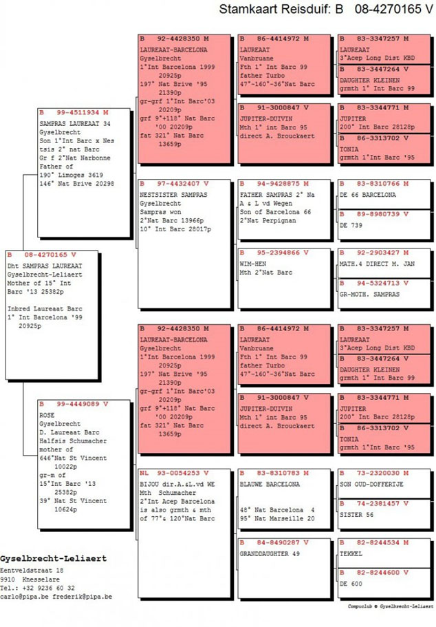 母鴿:BE08-4270165班母 “榮耀桑普拉斯號” 血統書