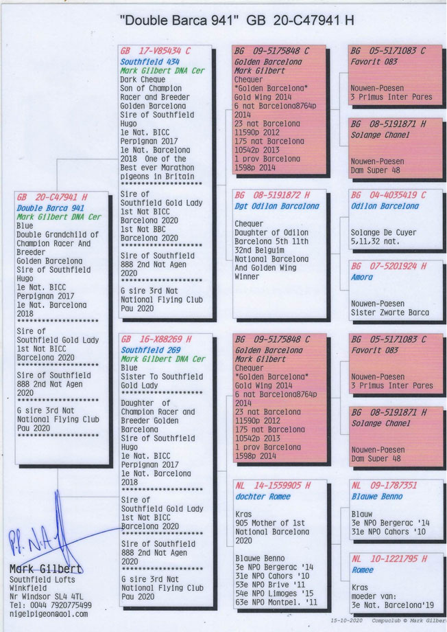 父鴿:GB17-V85434斑公,是“黃金巴賽隆納號”直仔。