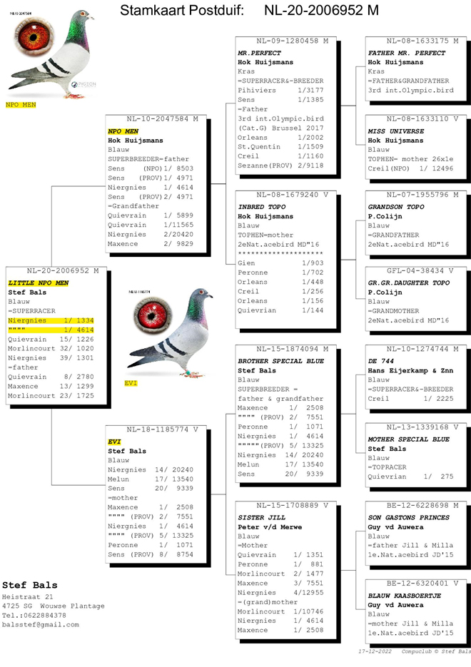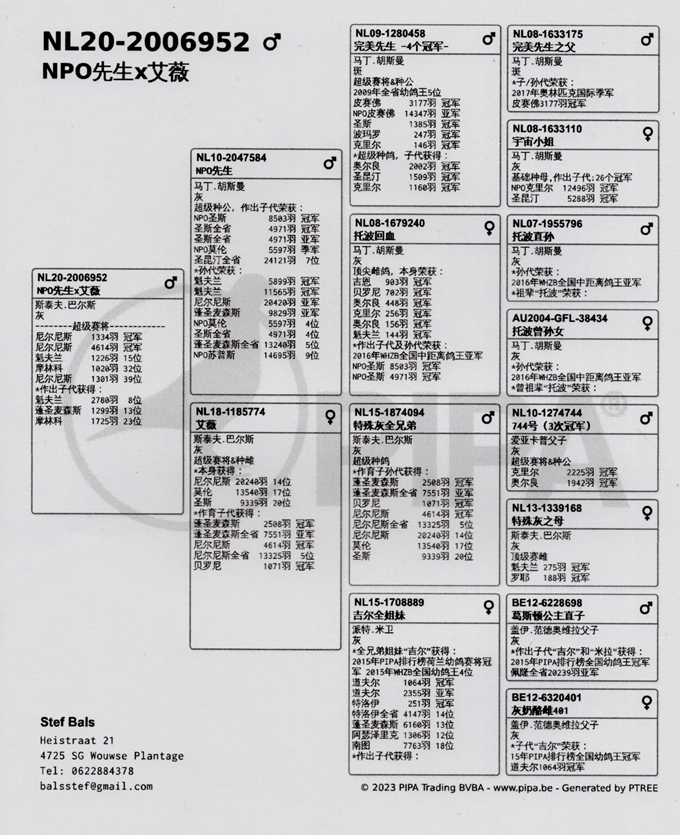 ●父鴿:NL10-2047584 “NPO先生”,斯泰夫.巴爾斯基礎種公,出自“完美先生”X“托波回血”
