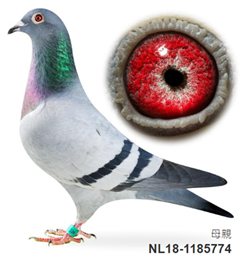 ●母鴿:NL18-1185774 “艾薇”,頂尖賽雌,出自“特殊灰全兄弟”X“吉爾全姐妹”,獲得: